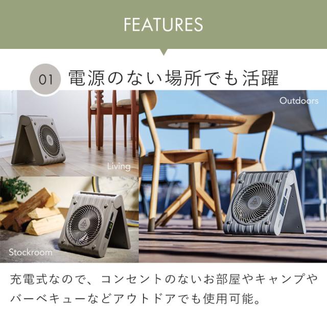 充電式で電源のないお部屋やアウトドアでも使える扇風機です。