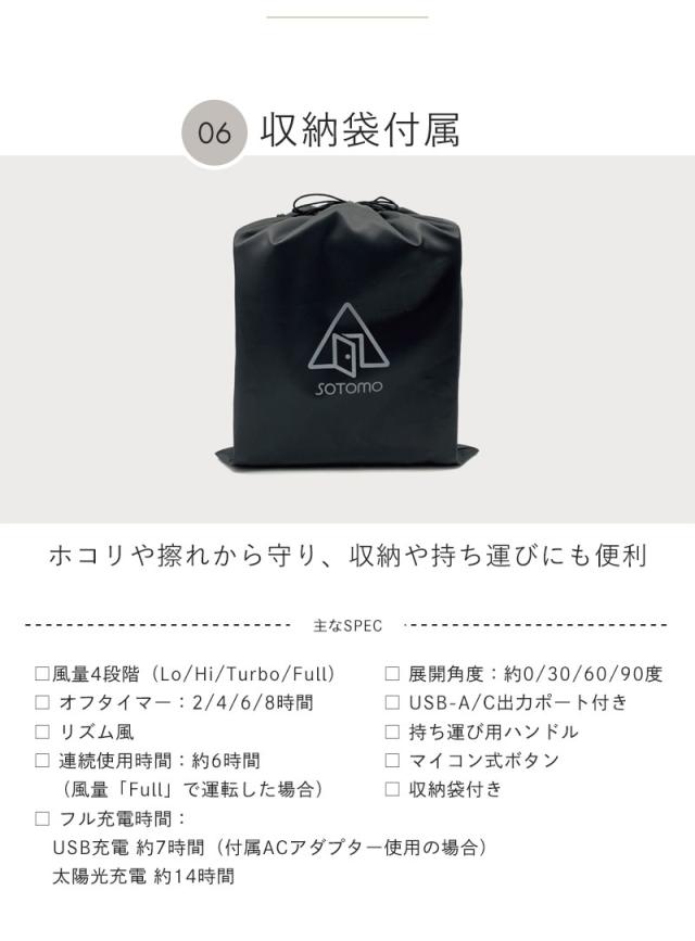 ソーラー 扇風機 アウトドア 防水 充電式 コードレス ファン USB 充電 バッテリー 10,000mAh スマホ充電 折りたたみ コンパクト 収納袋付き 太陽光 おしゃれ 屋外 防災 停電 非常用 充電器