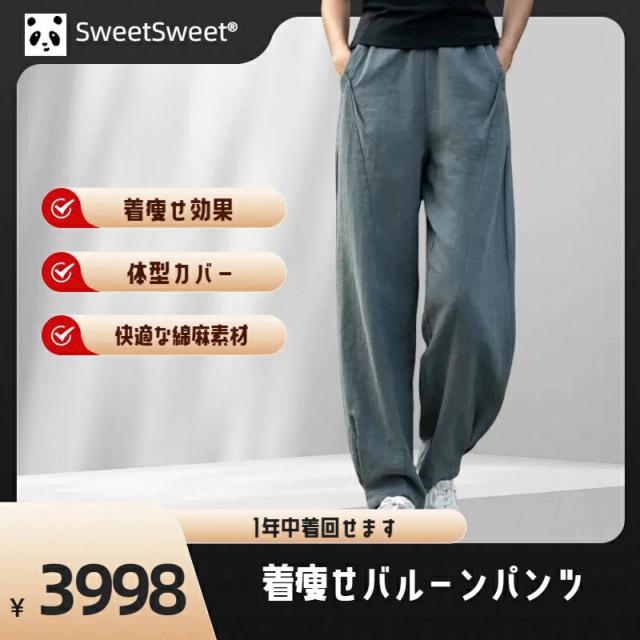 SweetSweetでの綿麻パンツ、着痩せ効果ある新スタイルが登場!