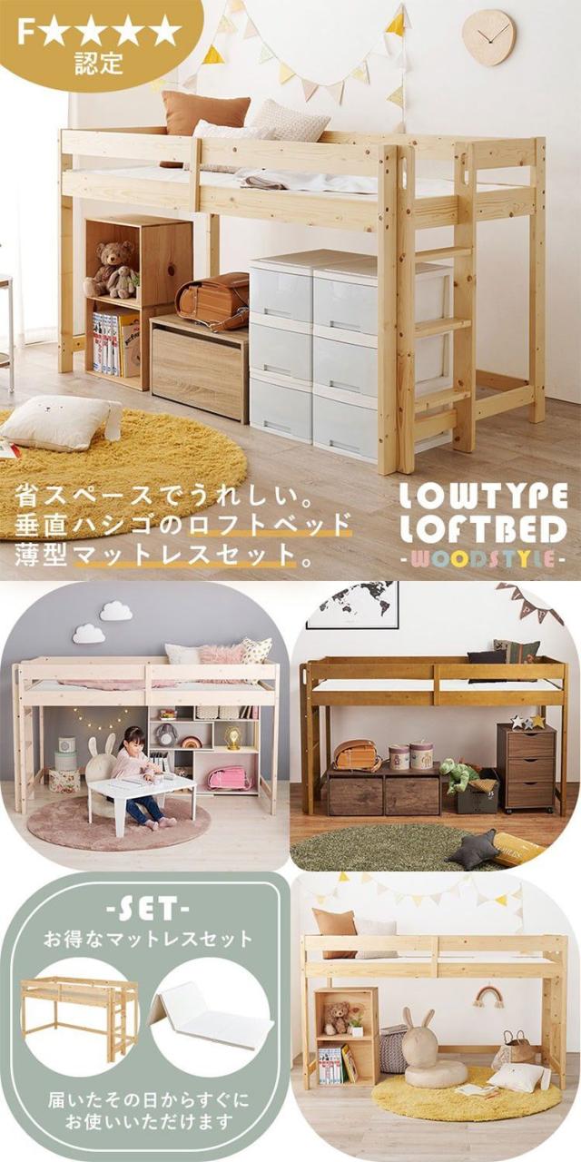 耐荷重250kg 頑丈ロフトベッド マットレス付き 2点セット ロータイプ 高さ120cm 垂直ハシゴ 省スペース 天然木 すのこベッド ベッドフレーム 子供部屋 子ども部屋 北欧 ナチュラル おしゃれ(代引不可)【送料無料】