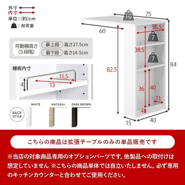 カウンター専用オプションテーブル 後付け 拡張テーブル単品 幅75cm 高さ84cm キッチンカウンター ごみ箱上ラック ゴミ箱上ラック(代引不可)【送料無料】