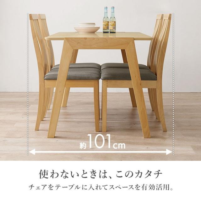 天然木を贅沢に使用したダイニング5点セット。チェアのゆるやかな背面デザインが空間に自然と溶け込みます。