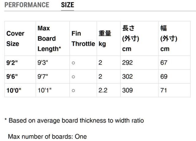 ※メーカー提供サイズです。お持ちのボードサイズや形状により、記載のサイズ内で収まらないサーフボードもある場合がございます。
