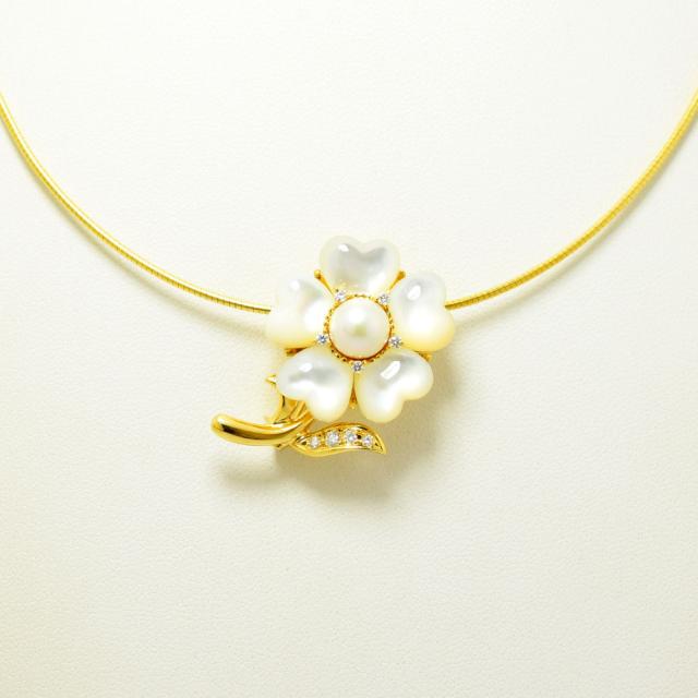 ミキモト ネックレス MIKIMOTO ブローチ 花 フラワー パール 7.2mm シェル ダイヤモンド 真珠 K18 750 新品仕上げ 中古