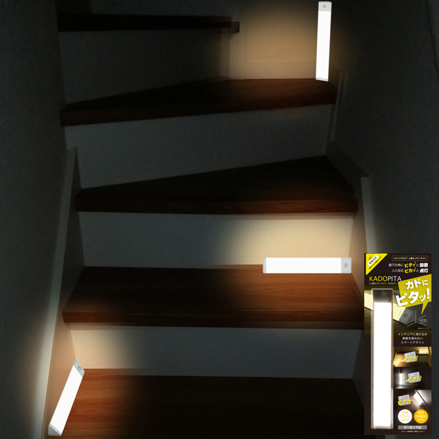 隙間なく角にピタッ!縦にも横にもインテリア配置 !人感センサーライト「カドピタ」[1点] (景観を損ねない 自動点灯 80ルーメン)