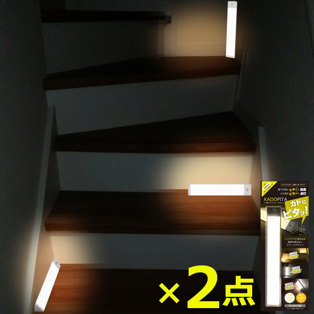 隙間なく角にピタッ!縦にも横にもインテリア配置 !人感センサーライト「カドピタ」[2点] (景観を損ねない 自動点灯 80ルーメン)