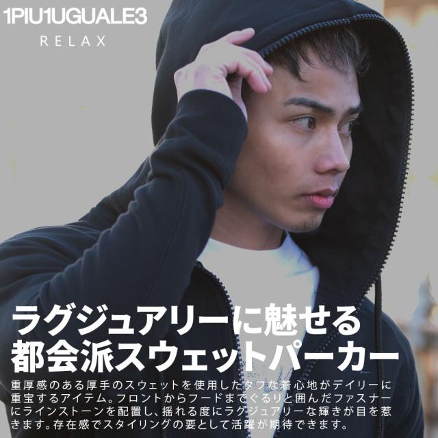 パーカー メンズ ブランド ジップパーカー 長袖 1PIU1UGUALE3 RELAX ラインストーン ジップアップ リラックス ラインストーン ロゴ スウェット フーディー スポーツ グレー ブラック 黒 男性 男 服 春 夏 ファッション 20代 30代 40代 父の日 即日発送 [USO-24022]