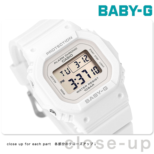 7年保証キャンペーン ベビーg ベビージー CASIO Baby-G BGD-565シリーズ クオーツ レディース 腕時計 BGD-565U-7DR デジタル ホワイト ◆アクティブな女性のためのカジュアルウオッチBABY-Gから、人気のスクエアデザインを採用したモデルです。BGD-565シリーズは華奢な手元にフィットするよう小型薄型化を図ると同時に、より薄く見せるため、ケースをサイドから見てフラットとなるデザインに仕上げました。機能面では耐衝撃構造や10気圧防水機能を搭載し実用性も兼ね備えました。様々なコーディネートに取り入れやすいカラーリングで、季節を問わず幅広いファッションに合わせやすいモデルです。 国内モデル品番:BGD-565U-7JF