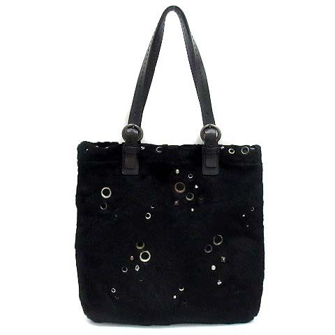 【中古】エポカ EPOCA ラビットファー 毛皮 ハトメ スタッズ ビジュー トートバッグ レザーハンドル 黒 ブラック レディース