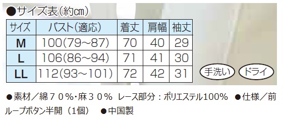 ●素材/綿70%・麻30% レース部分:ポリエステル100%