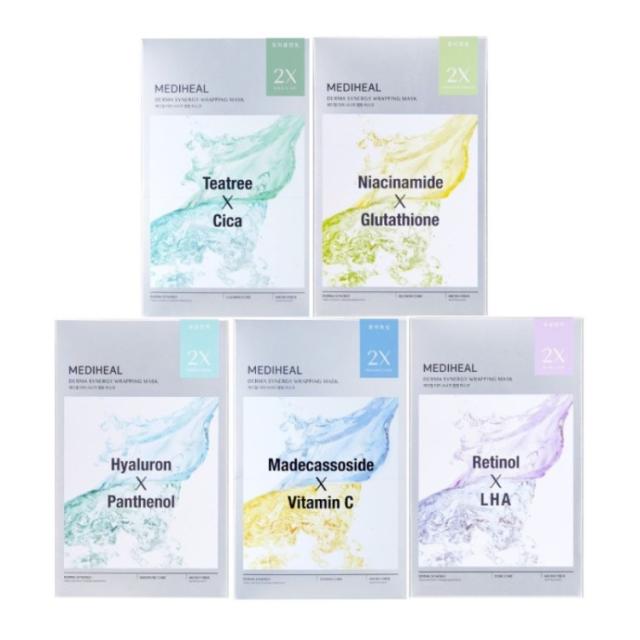 MEDIHEAL フェイスマスク ダーマシナジー ラッピング マスク 各4枚 全5種セット 合計20枚 箱なし スキンケア 肌ケア フェイスケア シートパック 毛穴改善 水分強化 肌改善 整肌 保湿 ヒアルロン シートマスク 集中ケア バランスケア 韓国コスメ 送料無料 即日発送