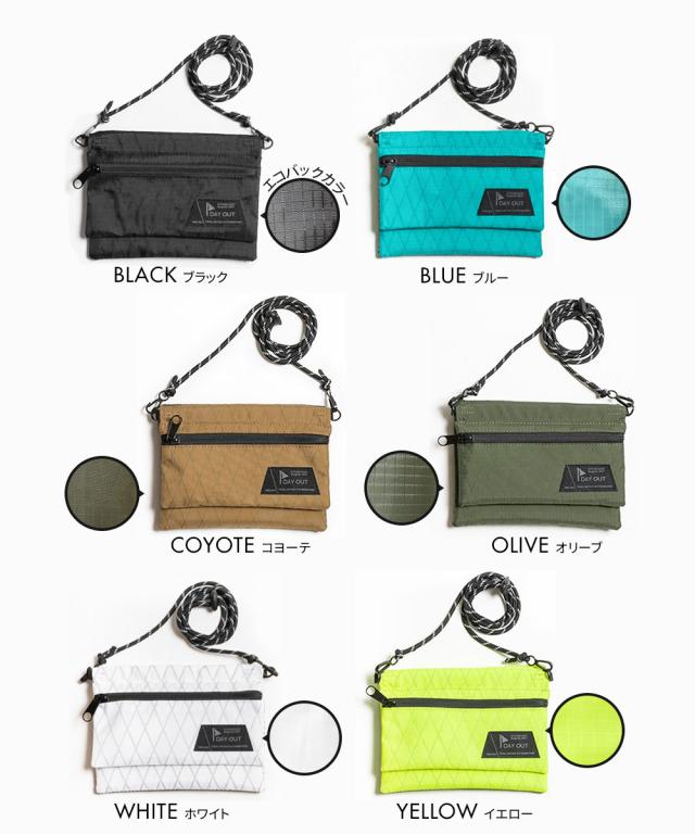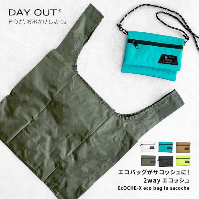 サコッシュ メンズ エコバッグ 2way ショルダーバッグ レディース 斜めがけ ユニセックス バッグインバッグ ストラップコード アウトドア キャンプ レジャー シンプル ブラック イエロー ブルー コヨーテ オリーブ 黒 DAY OUT デイアウト EcOCHE-X エコッシュ 033