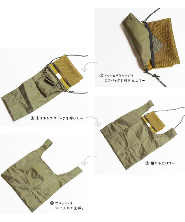 [素材]:本体/リップストップナイロン、エコバッグ/ポリエステル