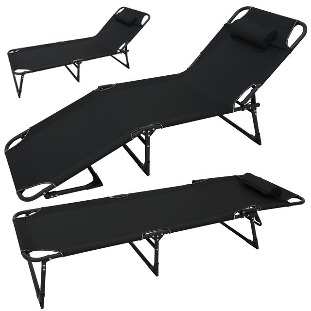 キャンプ アウトドア 枕付き快適折りたたみリクライニグラウンジベッド (防災ベッド 昼寝 ベランダ 組み立て不要) バーベキュー 夏休み