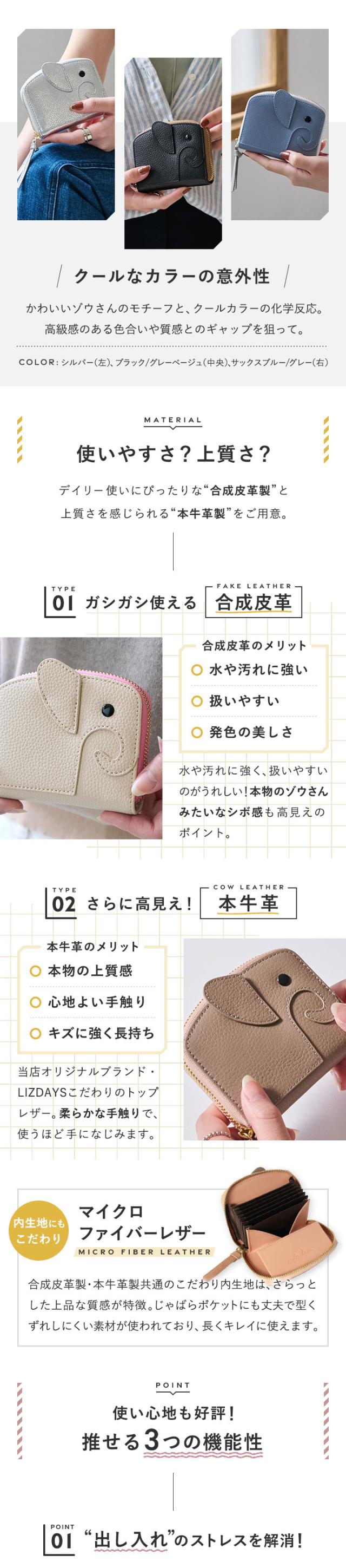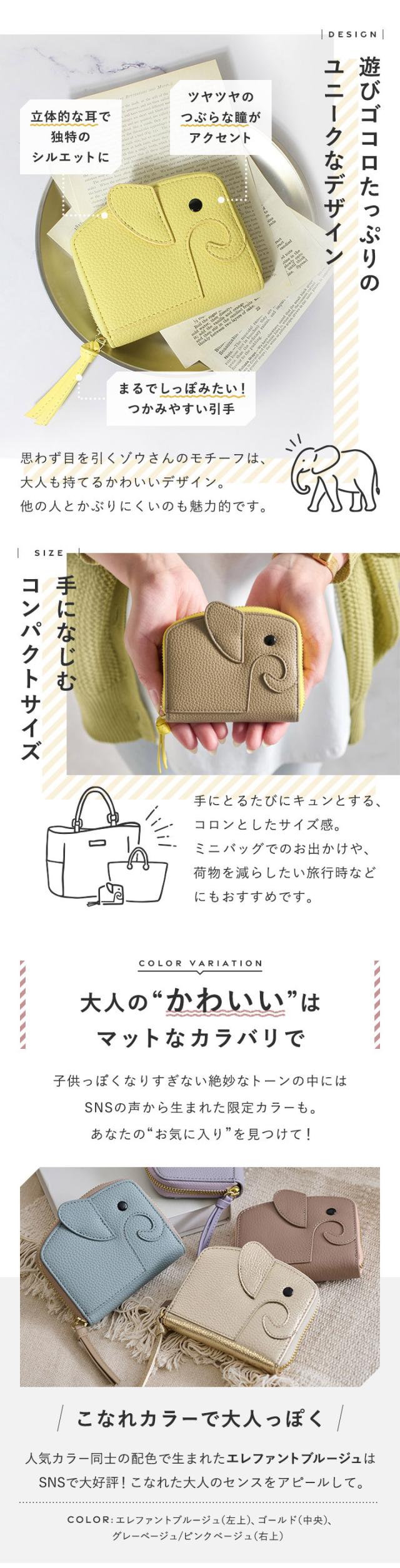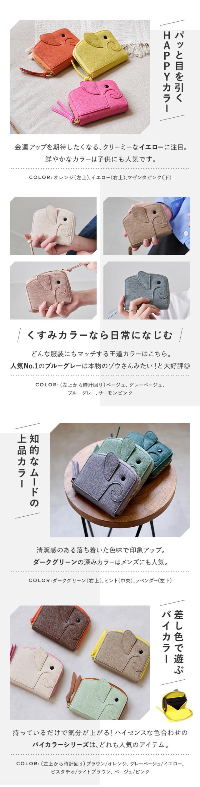 【全16色】幸せの象徴【ゾウさん】モチーフ財布。