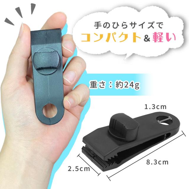 テントクリップ タープクリップ キャンプ用品 アウトドア テント タープ 強力 固定 ホルダー シートクリップ ロープ カラビナ フック 車 カー 連結 ブラック 黒 止める スクリュー固定式 調節可能