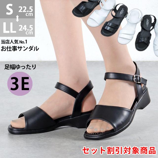 レディース オフィスサンダル 3E ローヒール 3.5cmヒール 幅広 合皮 事務 22.5-24.5cm AAA+ No.3530-3532
