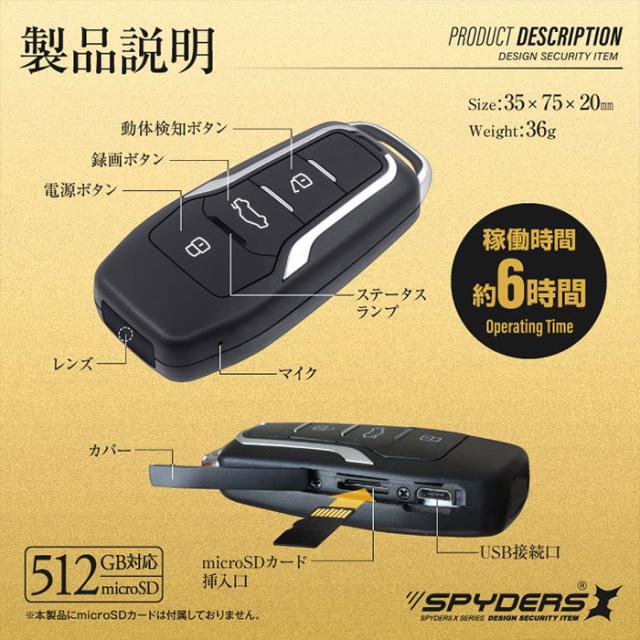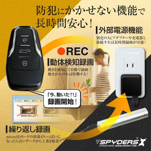 A-209Σ フルHD キーレス型カメラ 小型カメラ スパイカメラ オンスクエア スパイダーズX