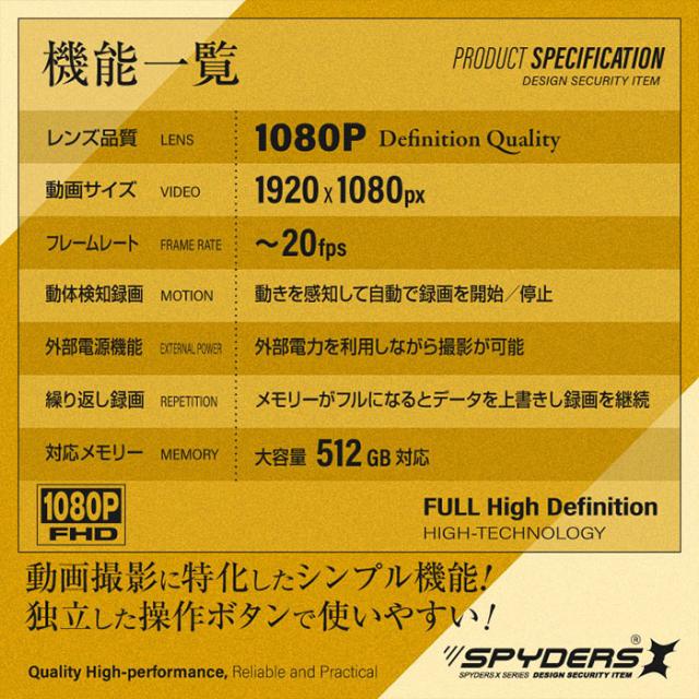 【小型カメラ】【防犯カメラ】【スパイカメラ】【オンスクエア】【スパイダーズX】