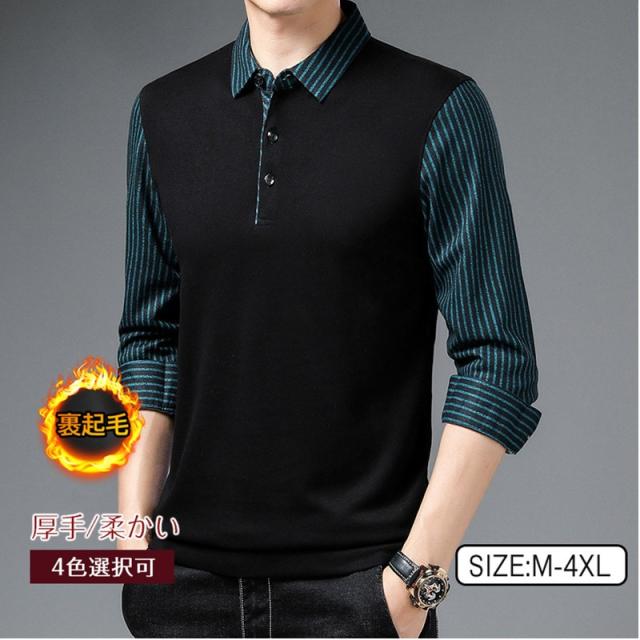 偽2件 ポロシャツ メンズ 長袖 Polo 裹起毛 ボア 一部即納 ゴルフウェア ゴルフシャツ 長袖ポロシャツ ビジネス Tシャツ トップス 秋冬