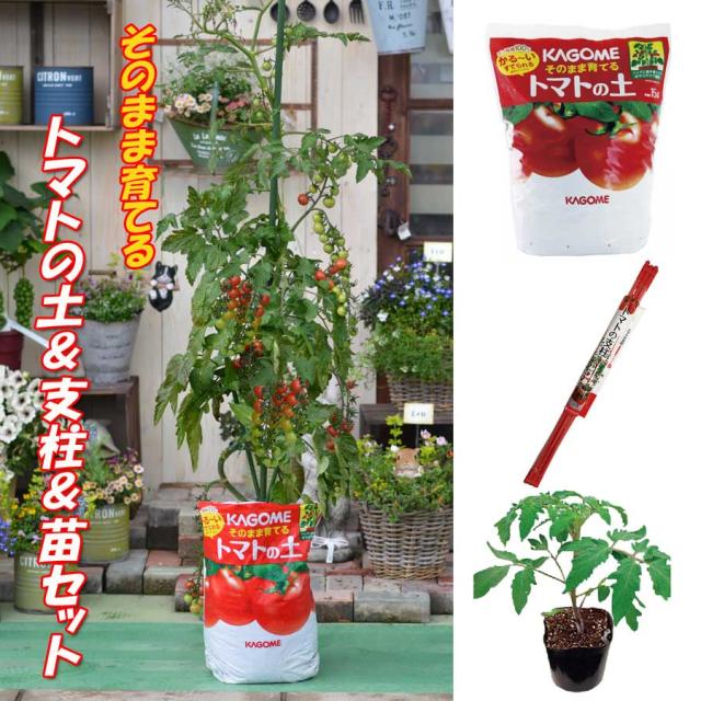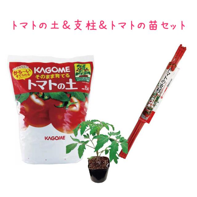 トマト 栽培セット そのまま育てる トマトの土 15L 専用支柱 野菜 KAGOME ピンキー シュガリーテール トマトの土・支柱・苗のセット 【ご予約品】