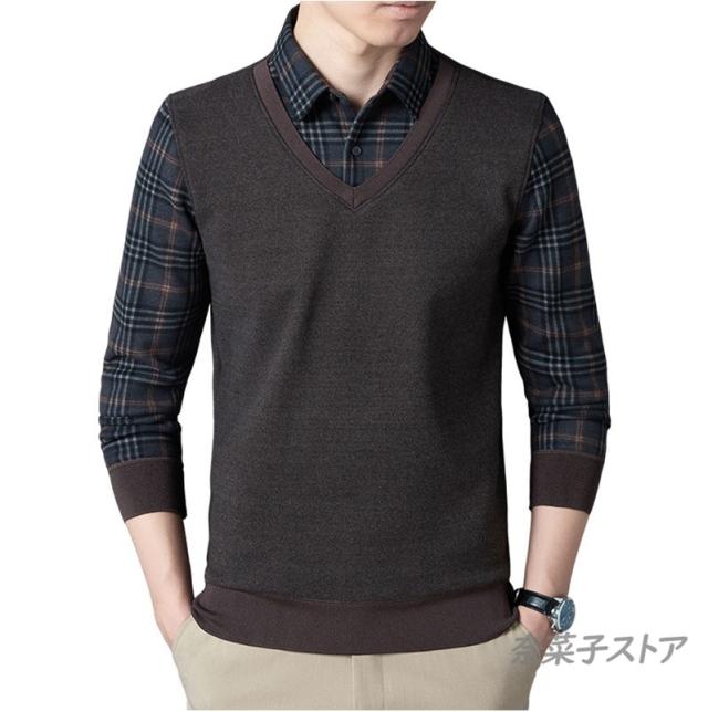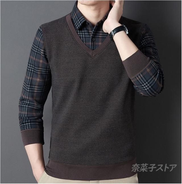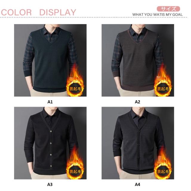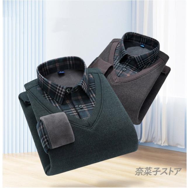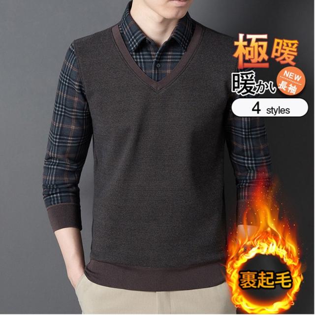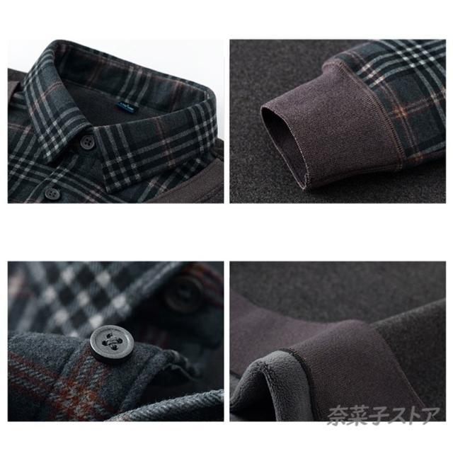 長袖シャツ メンズ チェク柄 裏起毛 偽2件 厚手 シャツ ボアシャツ ビジネス トップス 暖かい紳士服 保温 秋冬 極暖 通勤 ゴルフ