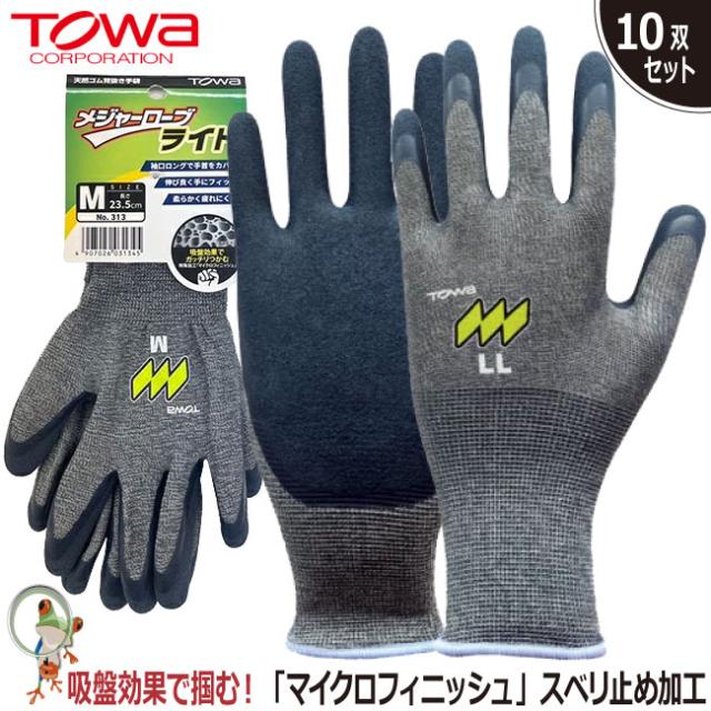 手袋 背抜き手袋 作業手袋 作業用手袋 TOWA 313 メジャーローブライト【10双セット】業務用 フィット感 グリップ力 特殊スベリ止めマイクロフィニッシュ加工
