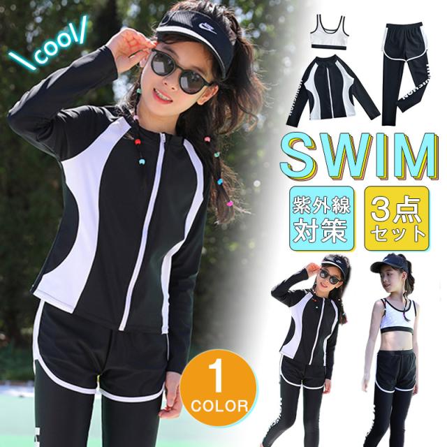 子供 水着 女子 体型カバー セパレート スクール ジュニア 学生 中学 女児 キッズ ビキニ 水着セット ラッシュガード 日焼け防止 紫外線対策 ラッシュガード トランクス UVカット パンツイン スイミング