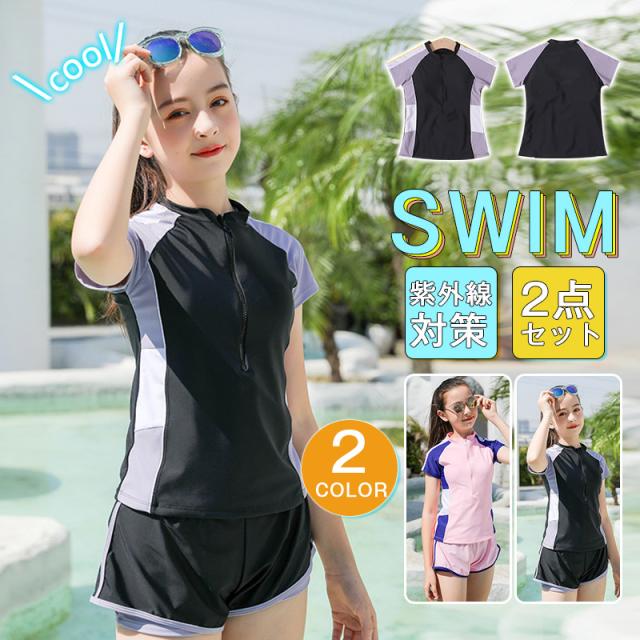 学校でも日常でも使える2点セット キッズ水着 上下セット 動きやすい 子供 女の子 水着 キッズ水着 スクール水着即納 2点セット 子供 水着 キッズ 水着 女の子 セパレート 水着 スクール水着 タンキニ セパレート 小学生 高校生 授業 半袖 ショートパンツ ラッシュガード レデイース 水着 スクール ジュニア 水着 子ども用 みずぎ スイミング 学校 プール 水泳授業 140 150 160 170