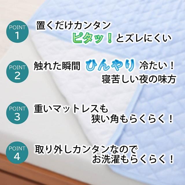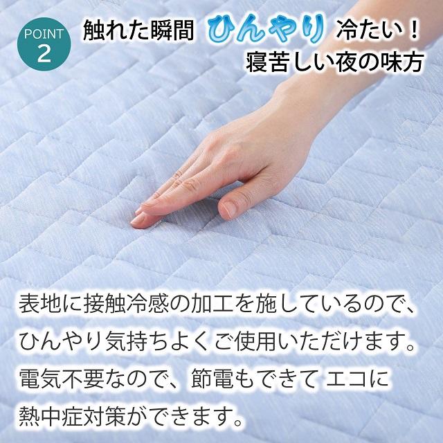 置くだけ!簡単!楽々!敷パッド●表面は ひんやり冷たい接触冷感素材を使用。