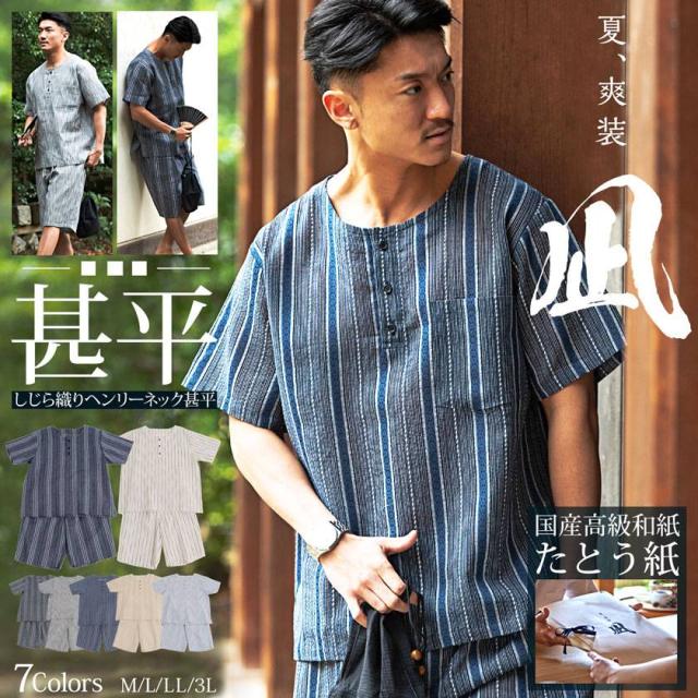 【送料無料】甚平 浴衣 ゆかた 祭り 父の日 プレゼント 実用的 メンズ ヘンリーネック 部屋着 ルームウェア パジャマ 和服 ギフト 誕生日 贈り物 M L XL XXL 花火大会 夏 しじら織り 男性 還暦 敬老の日 実用的 即日発送 [dl-tonojinbei-1]