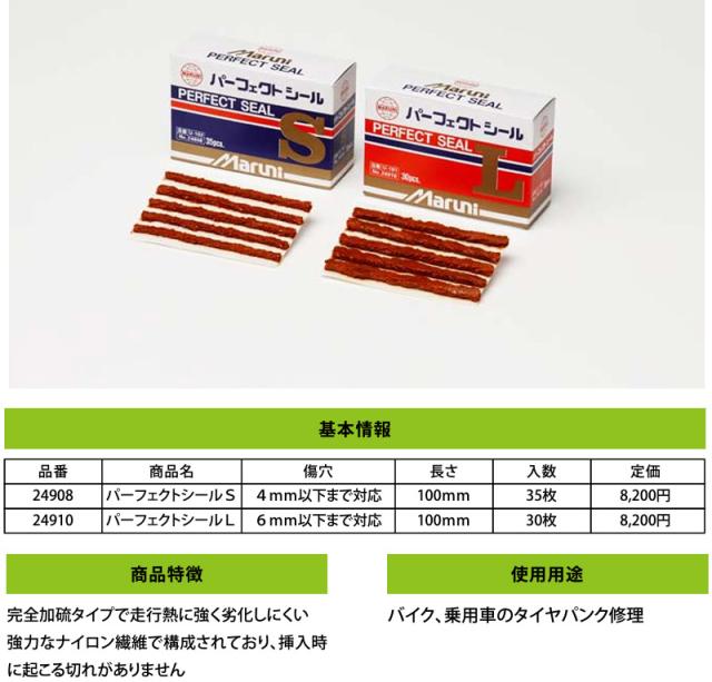 パンク修理 パーフェクトシール L 30枚入 長さ100mm 傷穴6mmまで対応 マルニ 24910 バイク 乗用車のタイヤパンク修理に