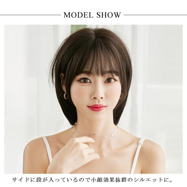 | ナチュラルなショートヘアのウィッグです。 サイドに段が入っているので小顔効果抜群のシルエットに。 自然な内巻きヘアで、清楚な大人の雰囲気を演出します。 | |