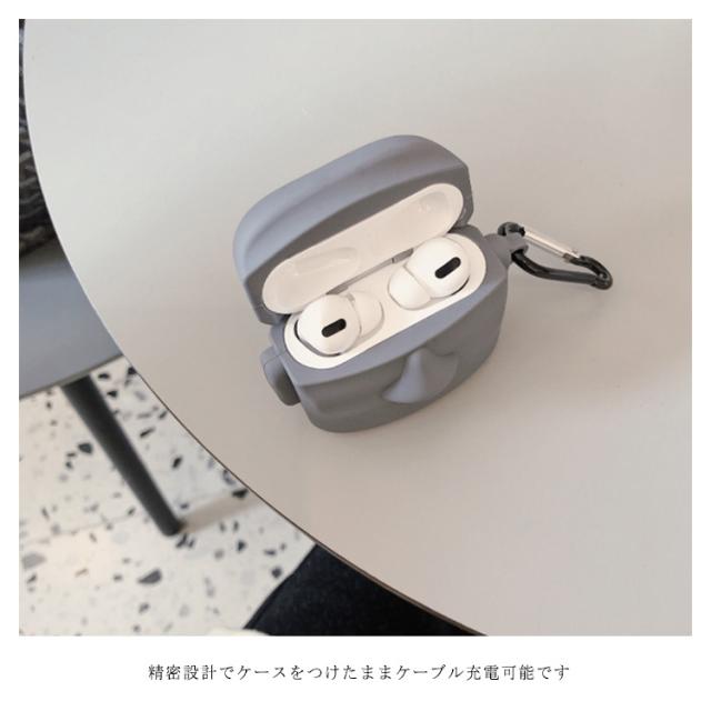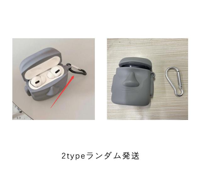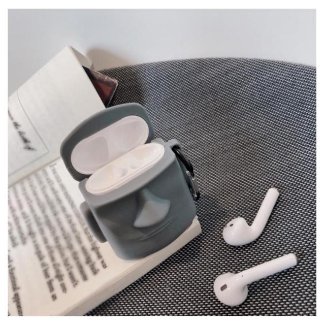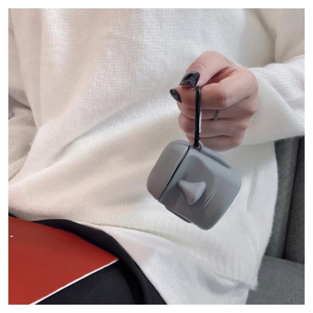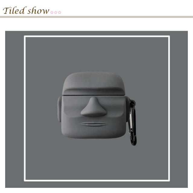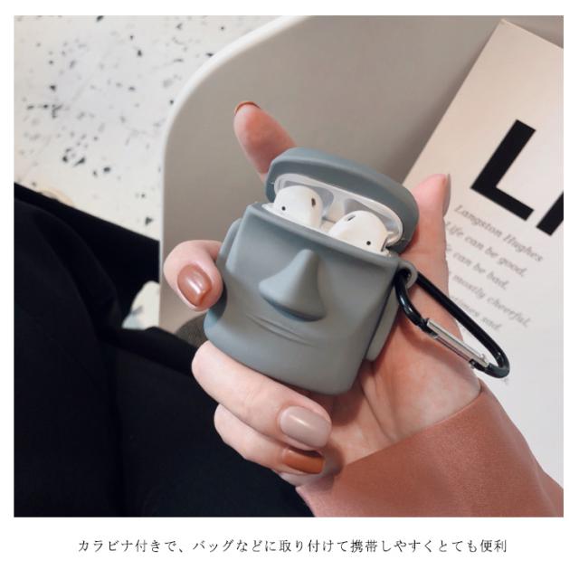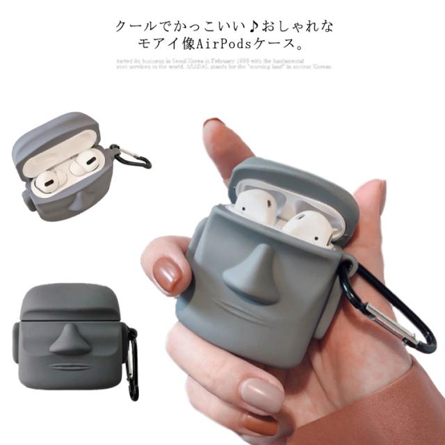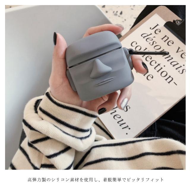 AirPods Proケース 送料無料 エアーポッズ モアイ石像 おしゃれ シリコン 耐衝撃 カラビナ付き 立体 AirPods2 エアーポッズケース カバー