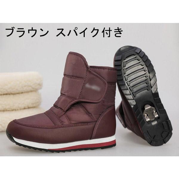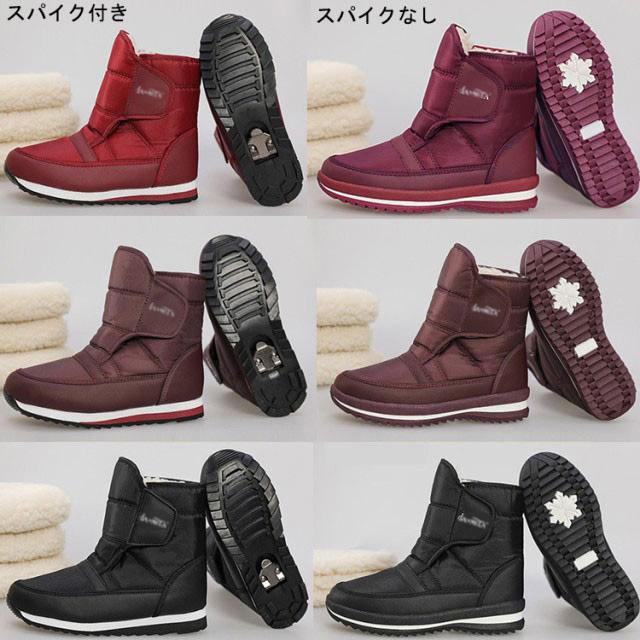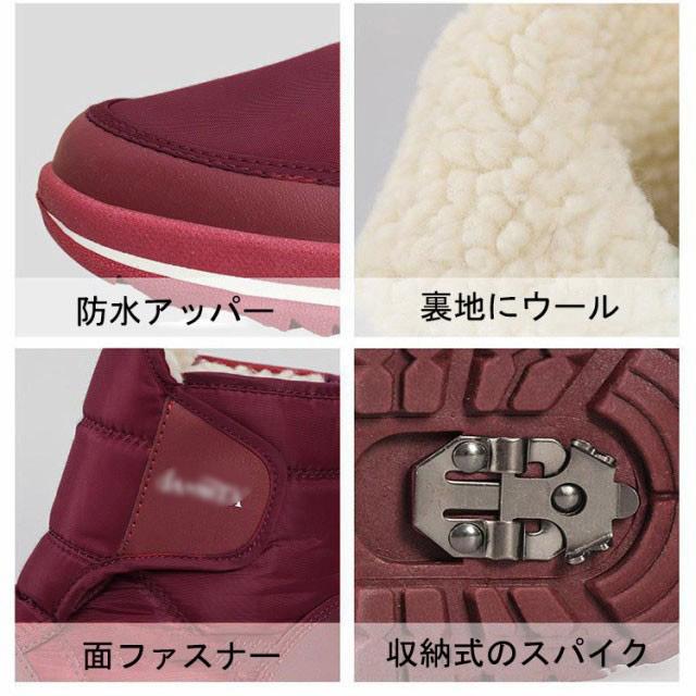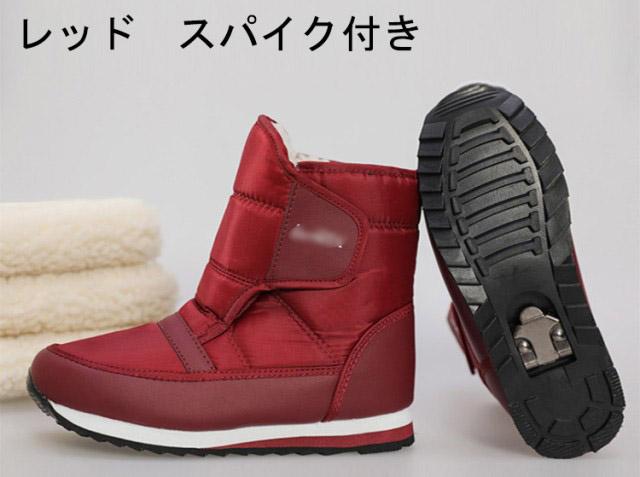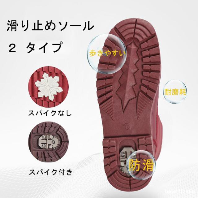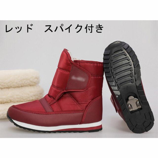 レディース スノーブーツ 裏ボア スパイク付き シューズ ジュニア ブーツ スノーブーツ 靴 厚底 防水 防寒靴 大人 スノー 軽量 裏起毛 雪遊び 防滑