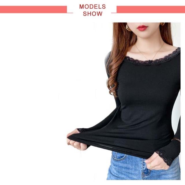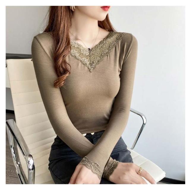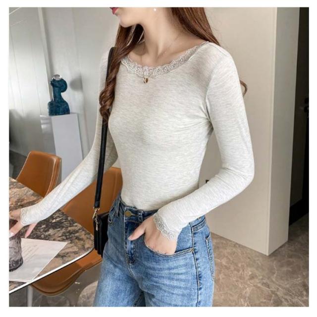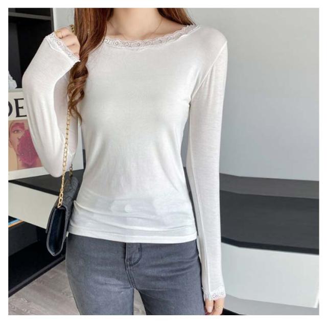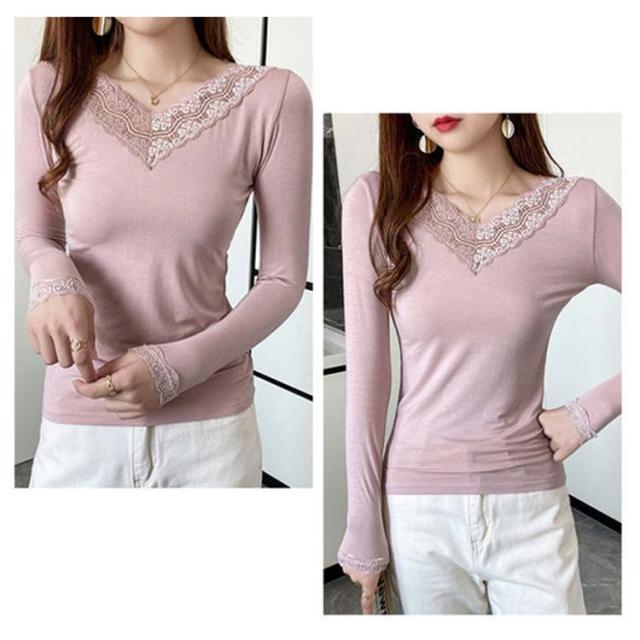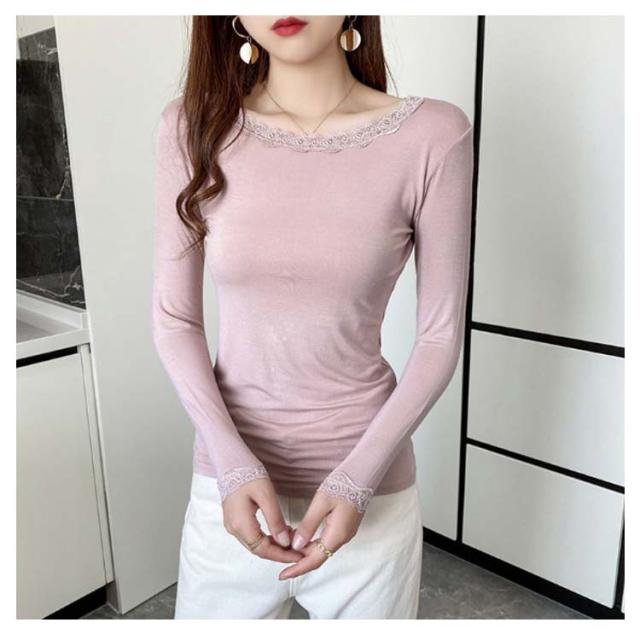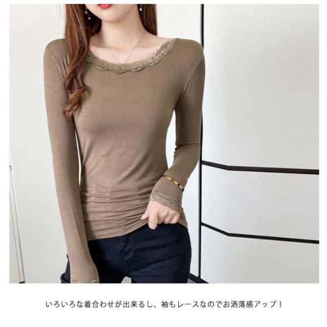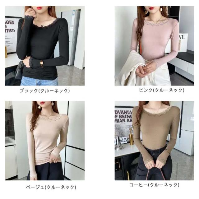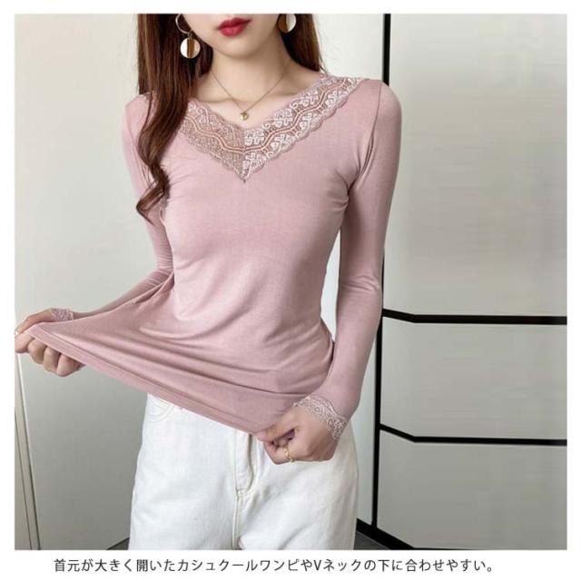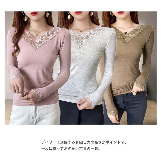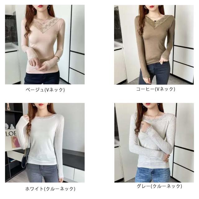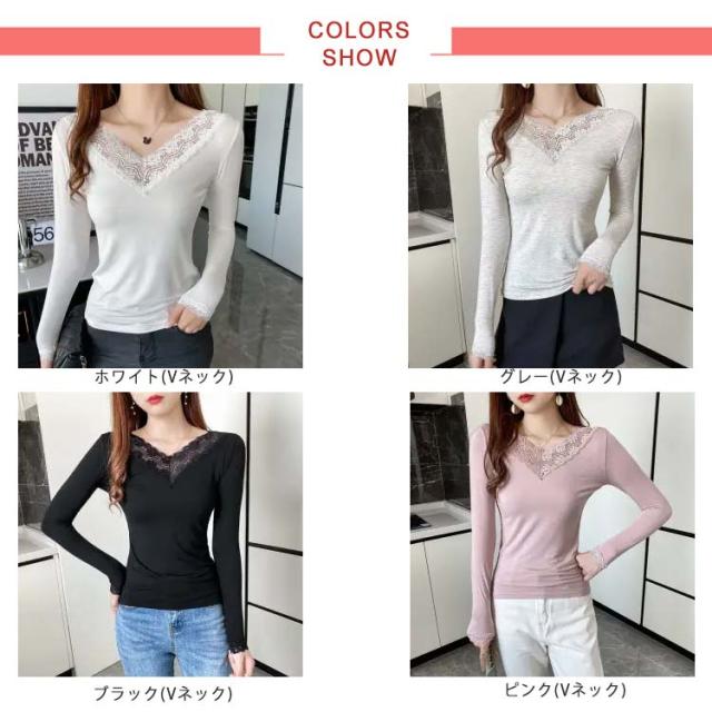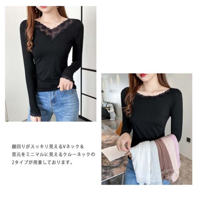 【送料無料】長袖 レースインナー トップス インナー Vネック クルーネック レース 肌着 下着 重ね着 花柄レース レイヤード 肌隠し ストレッチ 伸縮 カットソー シンプル 無地 上品 着回し きれいめ スリム 着痩せ 薄手 春秋冬