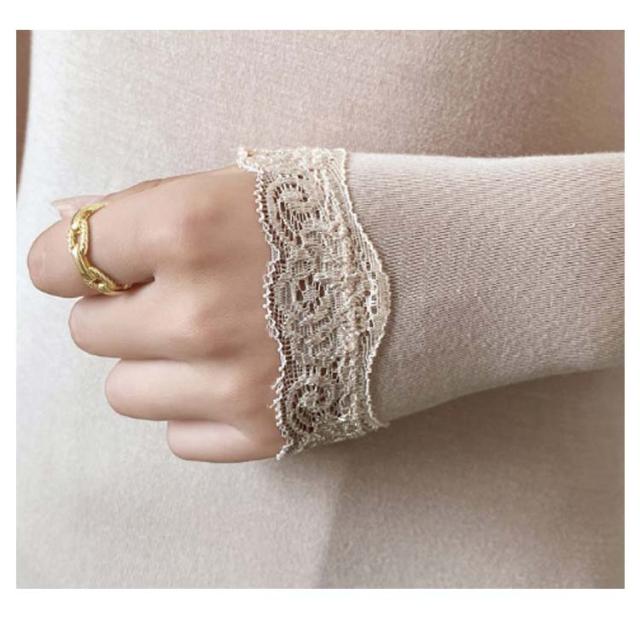 | しっとりとした薄手の生地を上品なレースが縁取った見せられるインナー。 顔回りがスッキリ見えるVネック&首元をミニマルに見えるクルーネックの2タイプが用意しております。 首元が大きく開いたカシュクールワンピやVネックの下に合わせやすい。 いろいろな着合わせが出来るし、袖もレースなのでお洒落感アップ! デイリーに活躍する着回し力の高さがポイントで、一枚は持っておきたい定番の一着。 | |