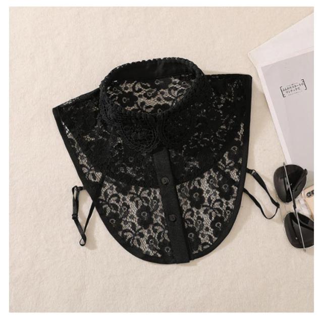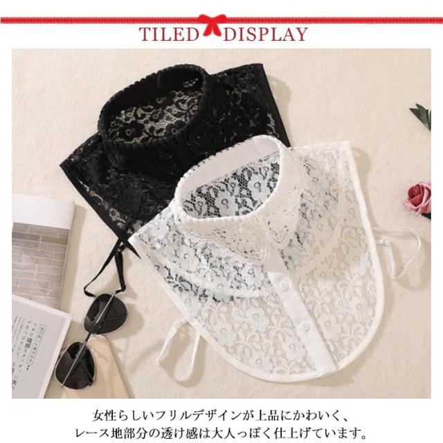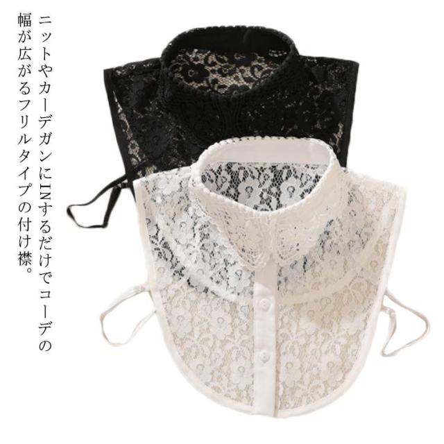 送料無料 つけ襟 シャツ襟 フリル 花柄レース 総レース タートル ハイネック 立ち襟 レディース フリルネック スタンドカラー 白いレース 重ね着風 レイヤード フォーマル カジュアル 可愛い ホワイト 白 黒