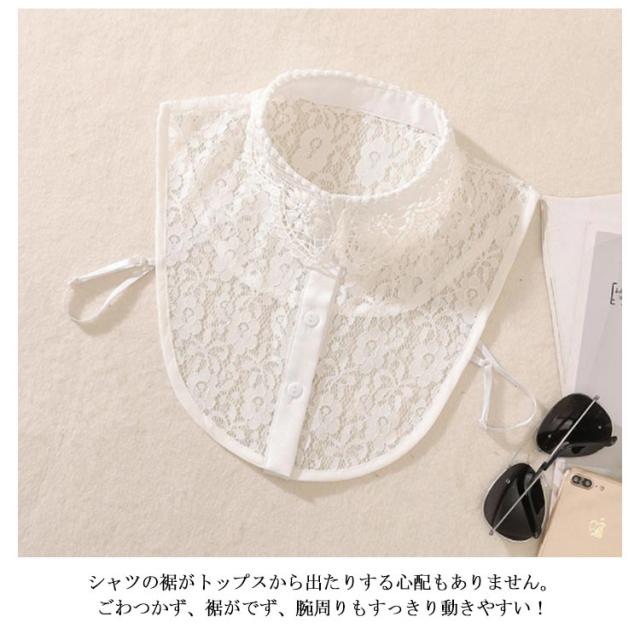 | ニットやカーデガンにINするだけでコーデの幅が広がるフリルタイプの付け襟。 女性らしいフリルデザインが上品にかわいく、レース地部分の透け感は大人っぽく仕上げています。 重ね着のもたつきがなくオシャレが楽しめます。 シャツの裾がトップスから出たりする心配もありません。ごわつかず、裾がでず、腕周りもすっきり動きやすい! | |