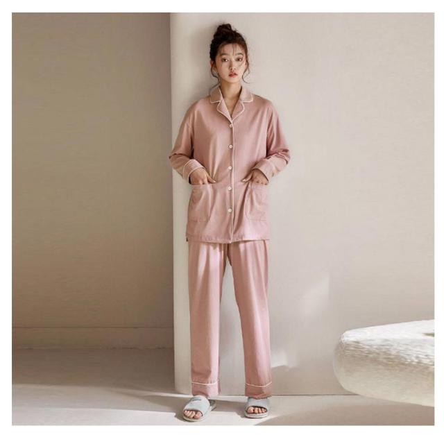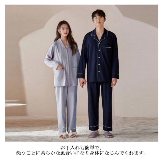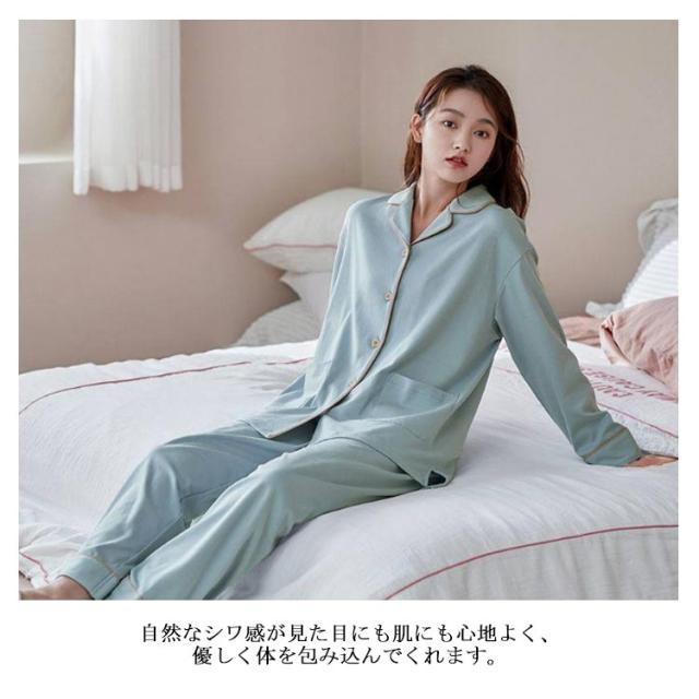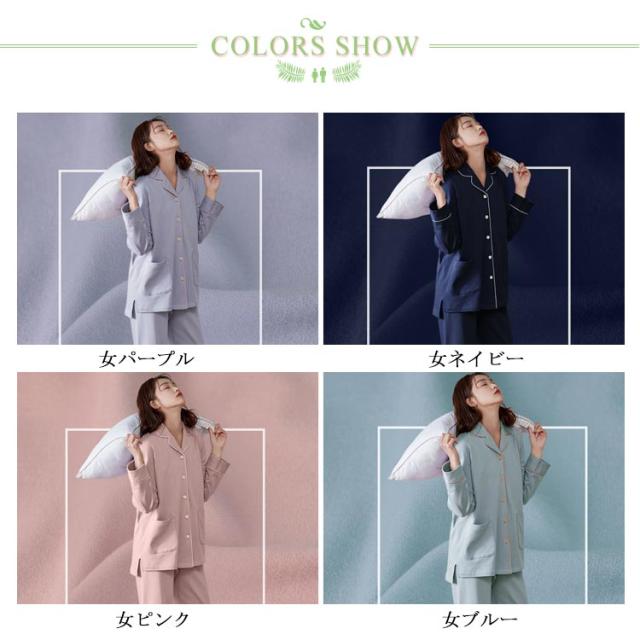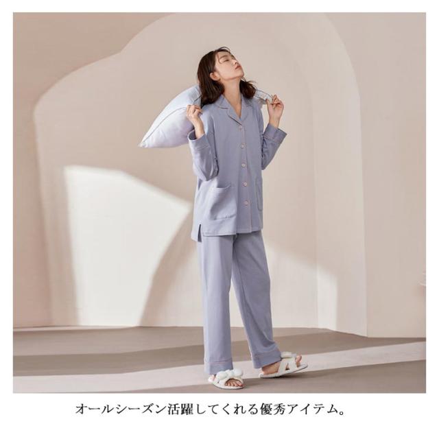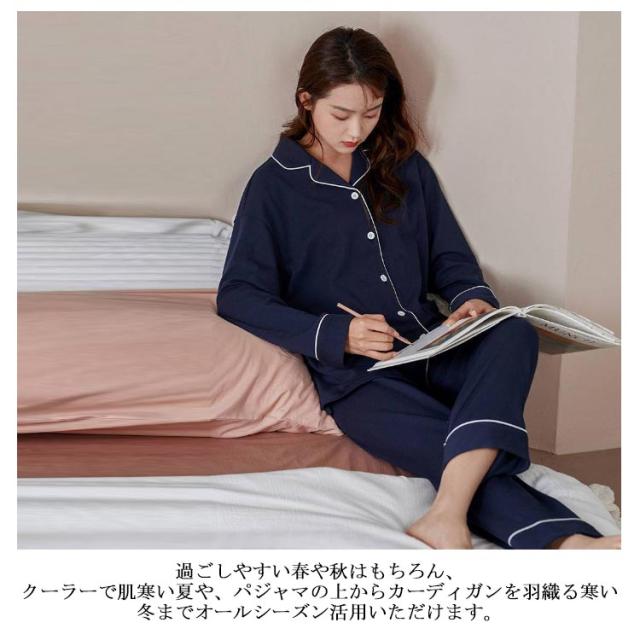 パジャマ 長袖 レディース 前開き 綿 長ズボン 部屋着 上下セット ダブル ガーゼ 無地 薄手 ルームウェア ナイトウェア 春秋 パンツ 夏用 入院 セットアップ プレゼント おしゃれ かわいい ネイビー ピンク グレー 送料無料 可愛い 大きいサイズ