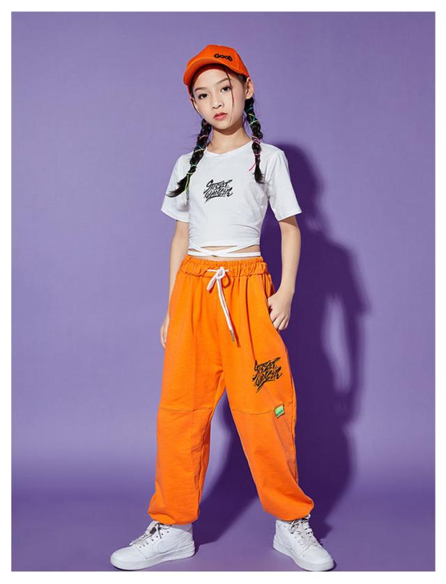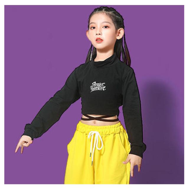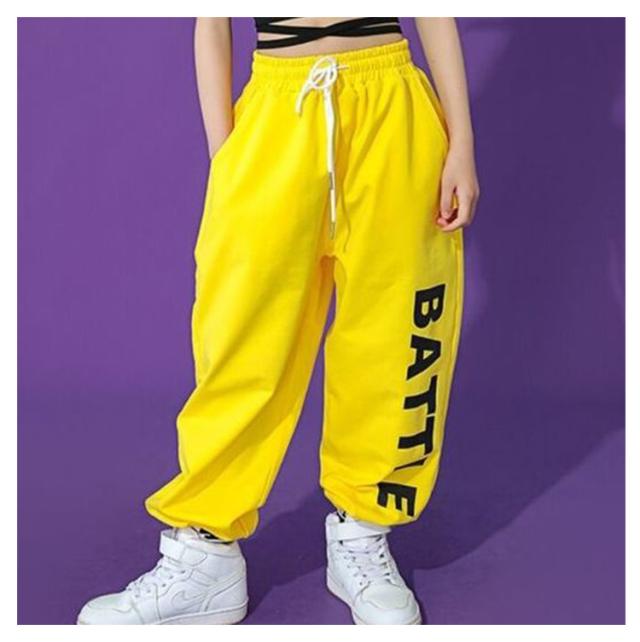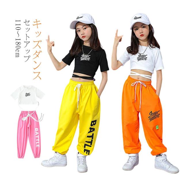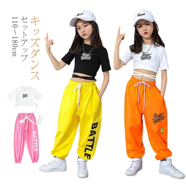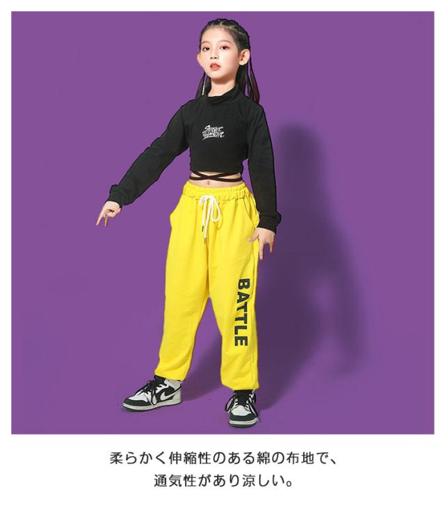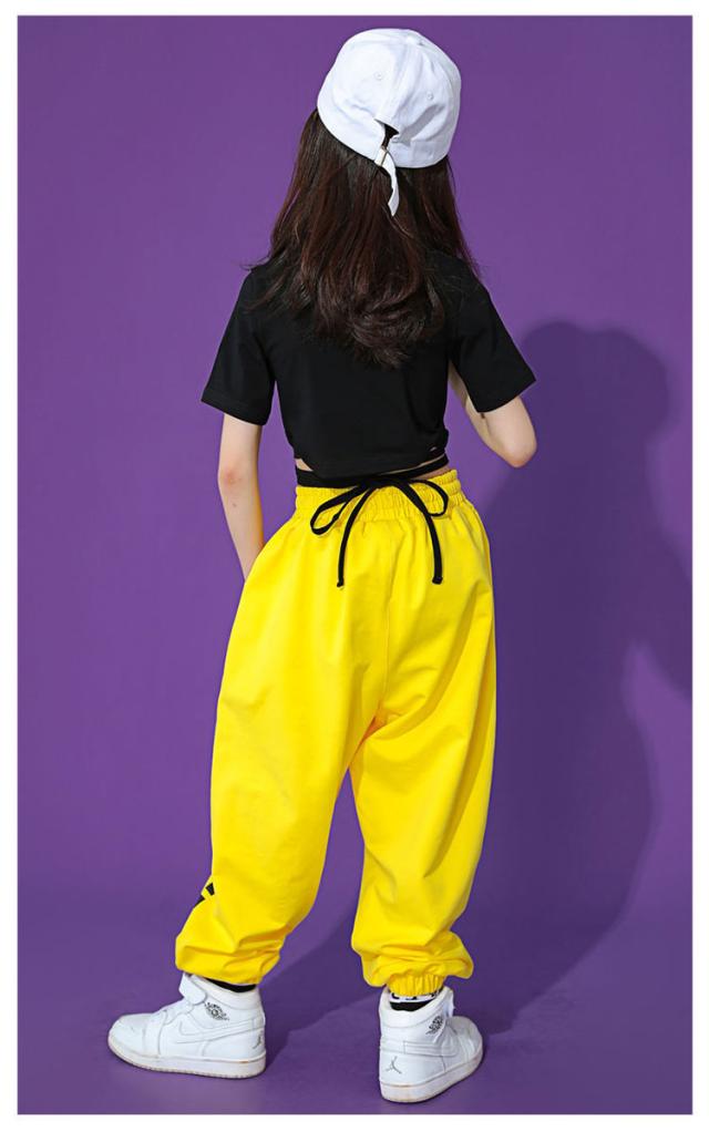 キッズダンス ダンス衣装 セットアップ 女の子 Tシャツ コットン 5分袖 パンツ イエロー 黒 ガールズ ジャッズ 韓国風 ヒップホップ ストリート 演出服 キッズ ダンスウェア ジュニア jazz 送料無料