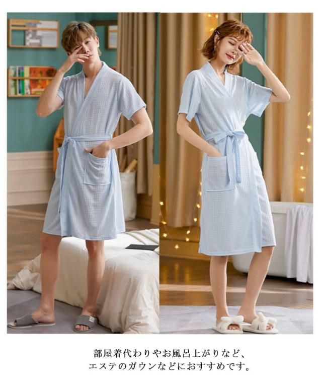 ワッフル バスローブ 半袖 夏用 薄手 ホテル メンズ レディース ナイトガウン タオル地 男女兼用 柔らかい ペア ルームウエア 部屋着 温泉 プレゼント