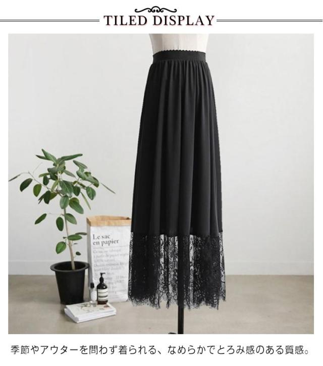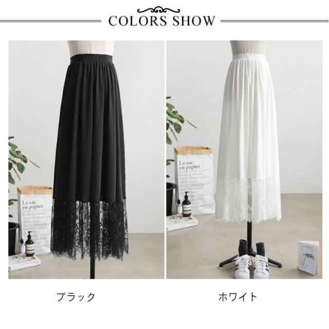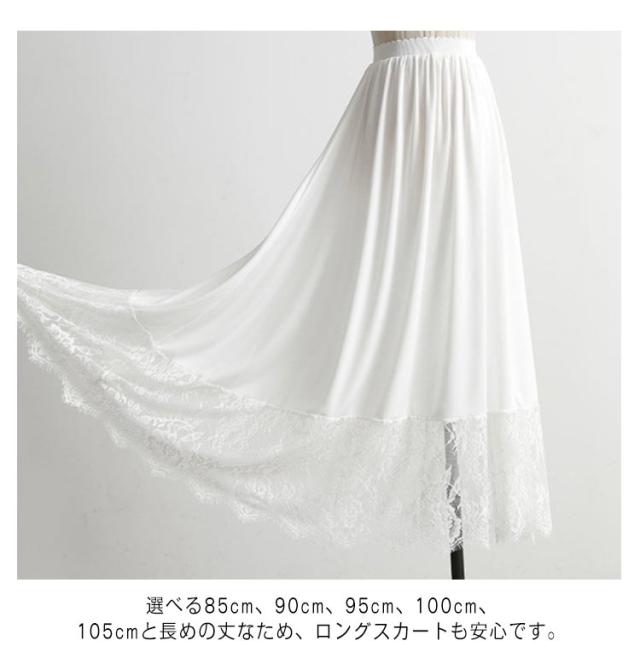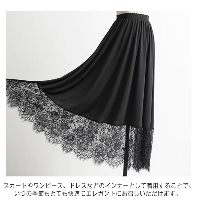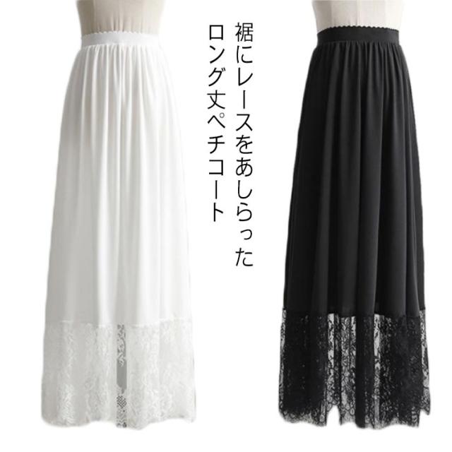 ペチコート スカート レディース ロング丈 ぺチスカート 裾レース 透けない 静電気防止 透け防止 ドレス ワンピース インナー レイヤード 重ね着 インナースカート 体型カバー ロングスカート 和装 着物 浴衣 肌着 下着 透け対策 エレガント シンプル 春 夏 秋 送料無料