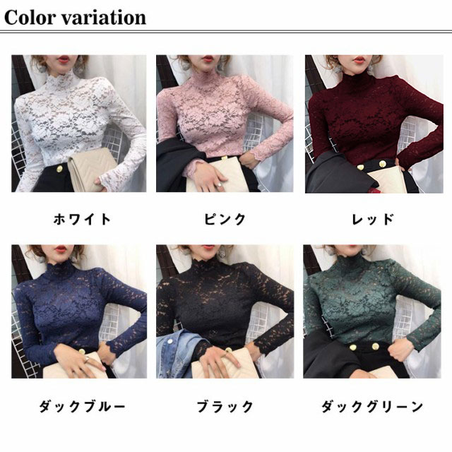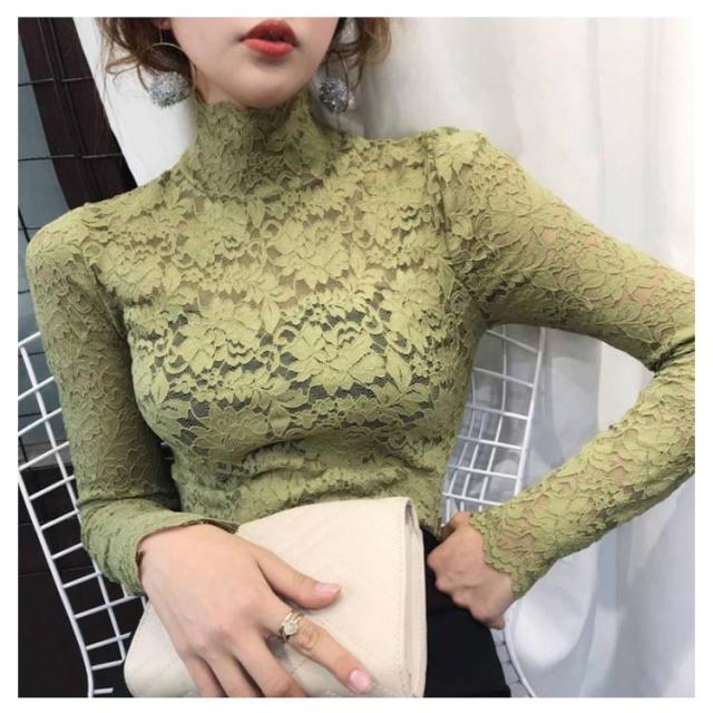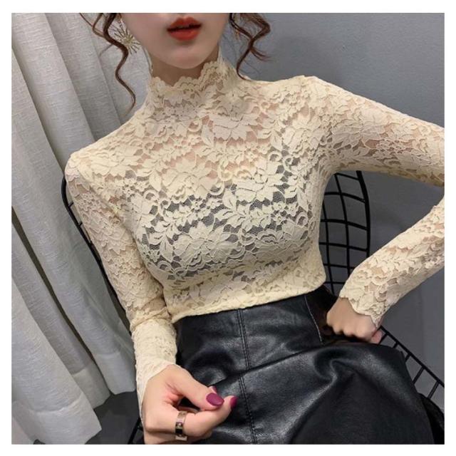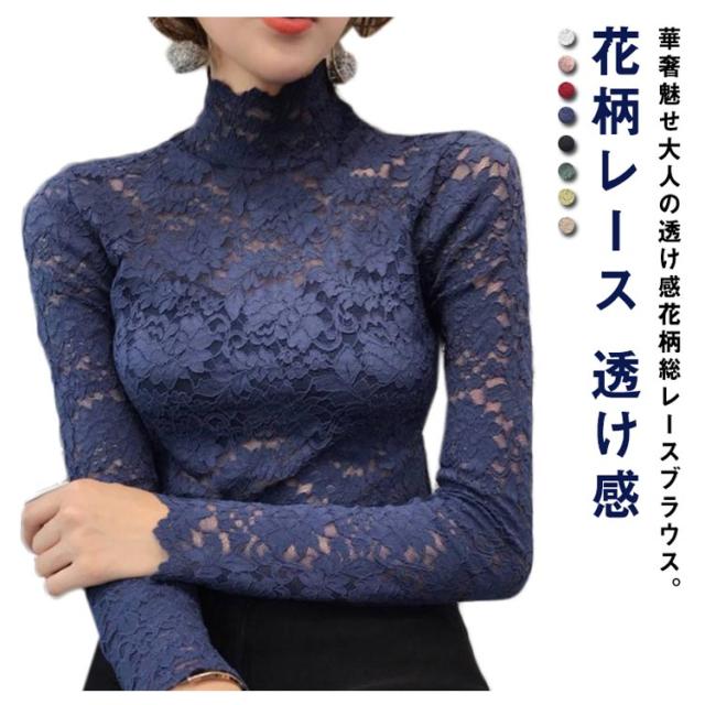 送料無料 レースブラウス 長袖 レディース ブラウス 総レース 花柄レース 透け感 ハイネック フリル スケスケ セクシー シースルー トップス シャツブラウス インナー 重ね着 レイヤード お洒落 着痩せ エレガント キレイめ プルオーバー 春服 秋物
