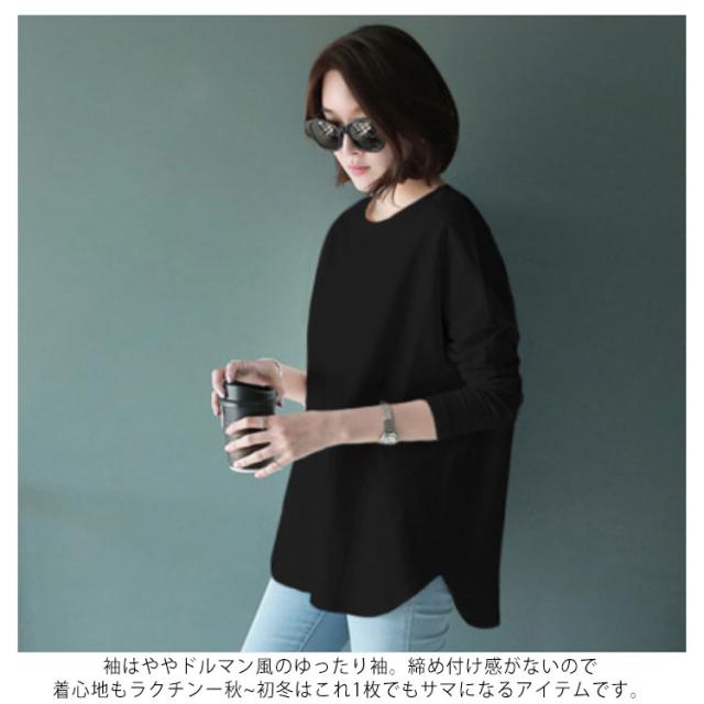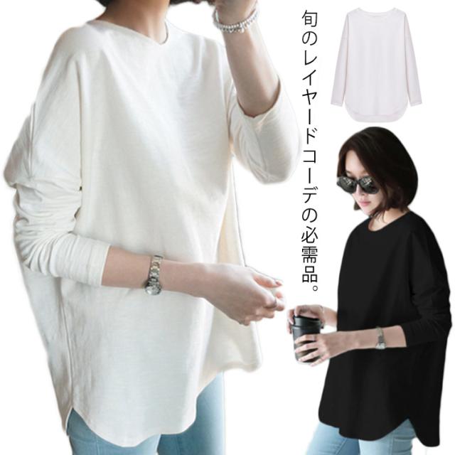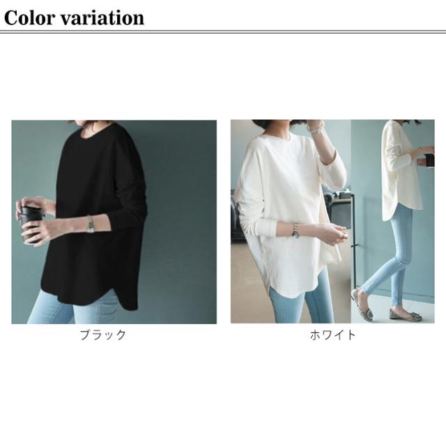 送料無料 スリット ビッグTシャツ ビッグシルエット 長袖 ロンT ロング丈 オーバーサイズ クルーネック 長袖tシャツ ロングtシャツ ロンティー ゆったり 重ね着 大人 無地 シンプル カジュアル 綿 コットン インナー