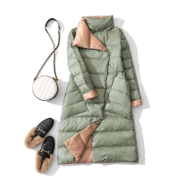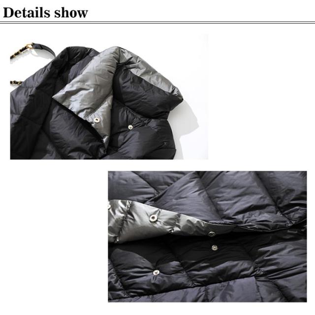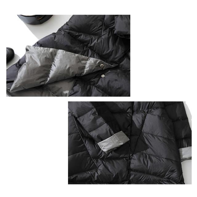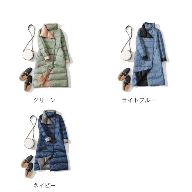 ダウンコート レディース 超軽量 薄手 リバーシブル バイカラー ダブルボタン ダウン96%以上 aライン スタンドカラー 防寒 防風 撥水 春 秋冬 アウター 暖かい あったか おしゃれ カジュアル シンプル