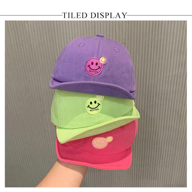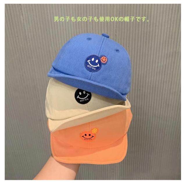 キッズ帽子 かわいい キャップ キッズ 帽子 女の子 子供帽子 ジュニア こども 子ども スマイル柄 ロゴ 女子 小学生 サイズ調整付 野球帽 ワイヤー入り おしゃれ 44-48cm 刺?