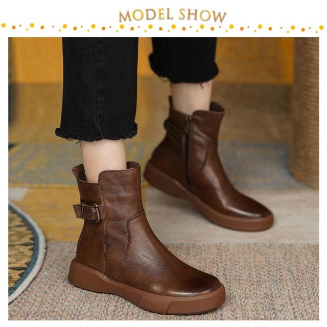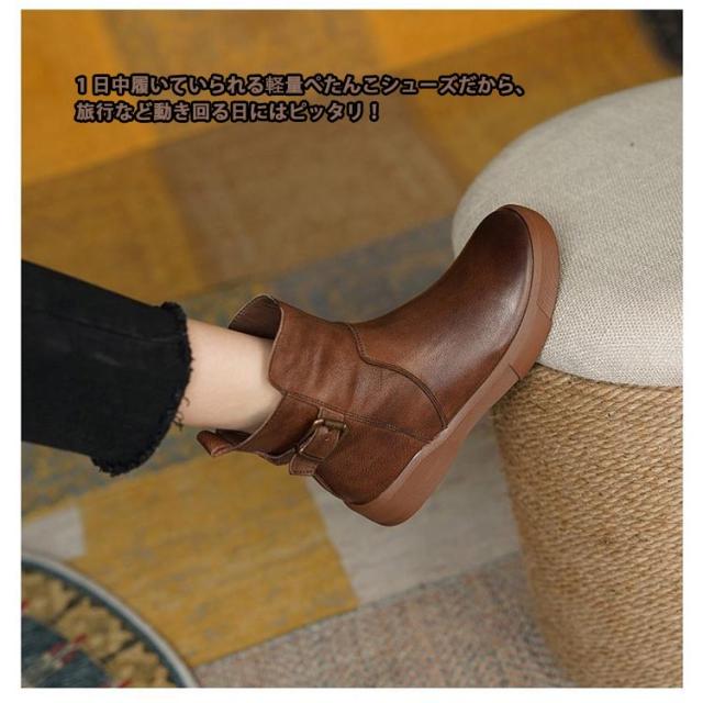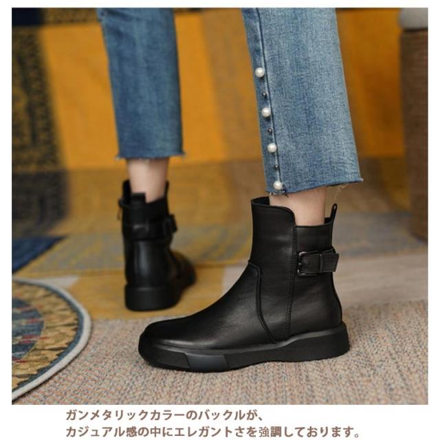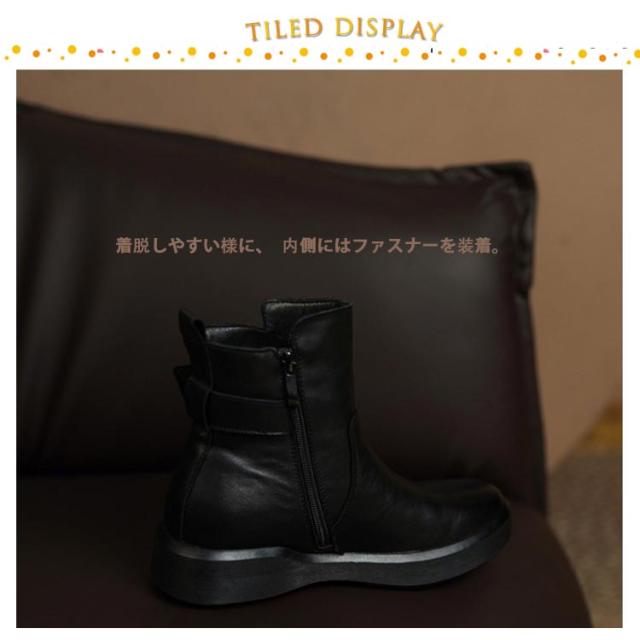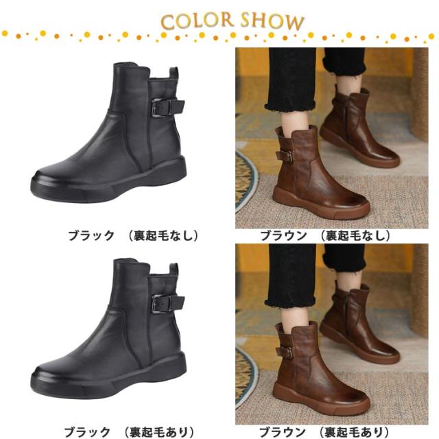 | 裏起毛なしと裏起毛ありが選べる!シンプルだけどオシャレに決まる定番のブーツです。 着脱しやすい様に、内側にはファスナーを装着。 ガンメタリックカラーのバックルが、カジュアル感の中にエレガントさを強調しております。 柔らかい素材を採用し、質感があり、汚れも拭き取りやすい。 厚底ソールは滑りにくく、安定した歩行をサポート。 履くだけで美脚になれる魅力が溢れてき、脚のラインをキレイに見せる。 1日中履いていられる軽量ぺたんこシューズだから、旅行など動き回る日にはピッタリ! スカート、レギンス、デニムなどに合わせてファッションとの相性もGood! | |