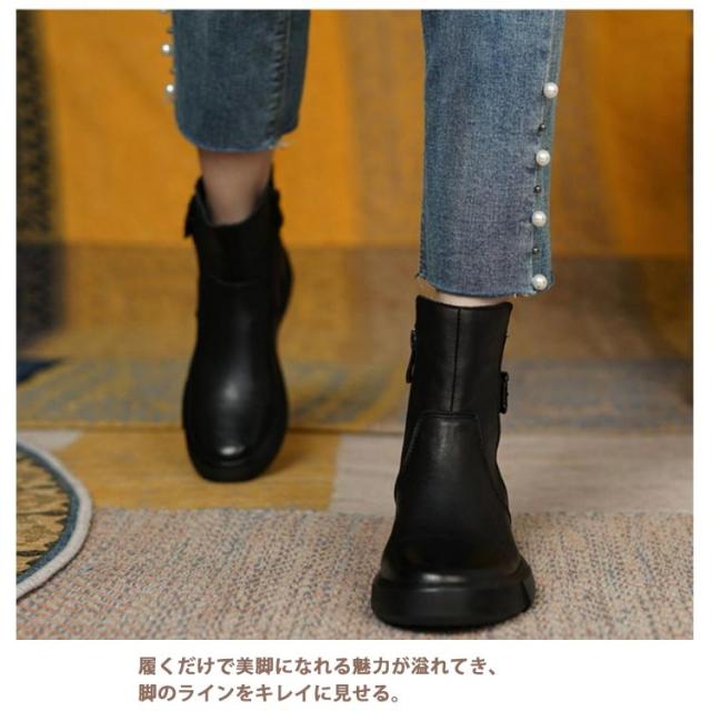 ショートブーツ レディース ブーツ PUレザー 厚底 痛くない 歩きやすい 滑り止め 柔らかい 2タイプ 裏起毛 防寒 真冬 靴 大きいサイズ ブーツ シューズ カジュアル きれいめ お出か 秋冬 春 22.5-26cm