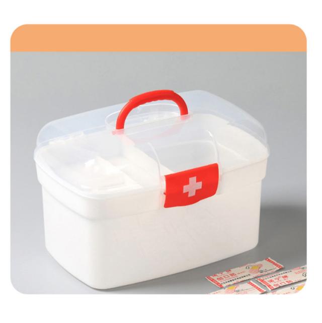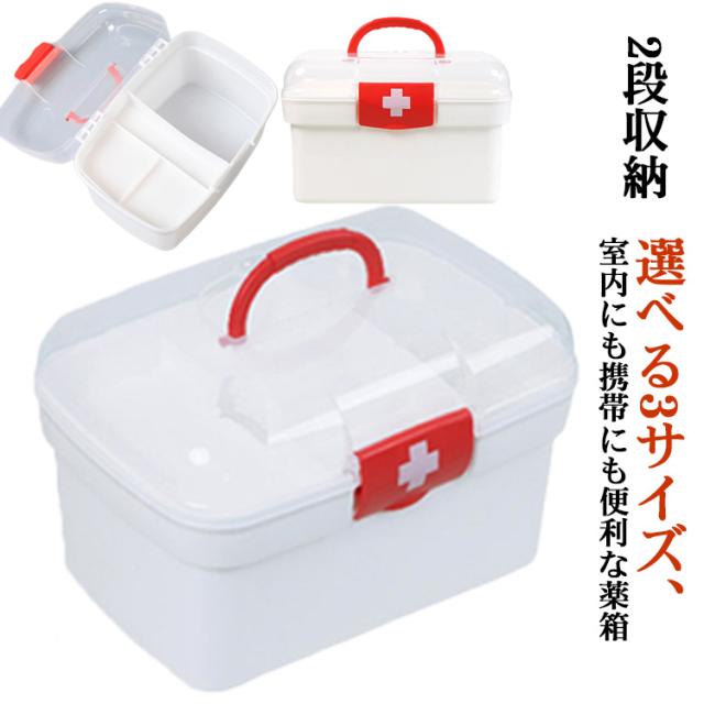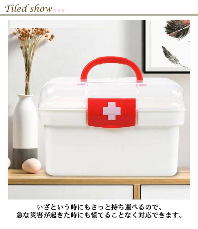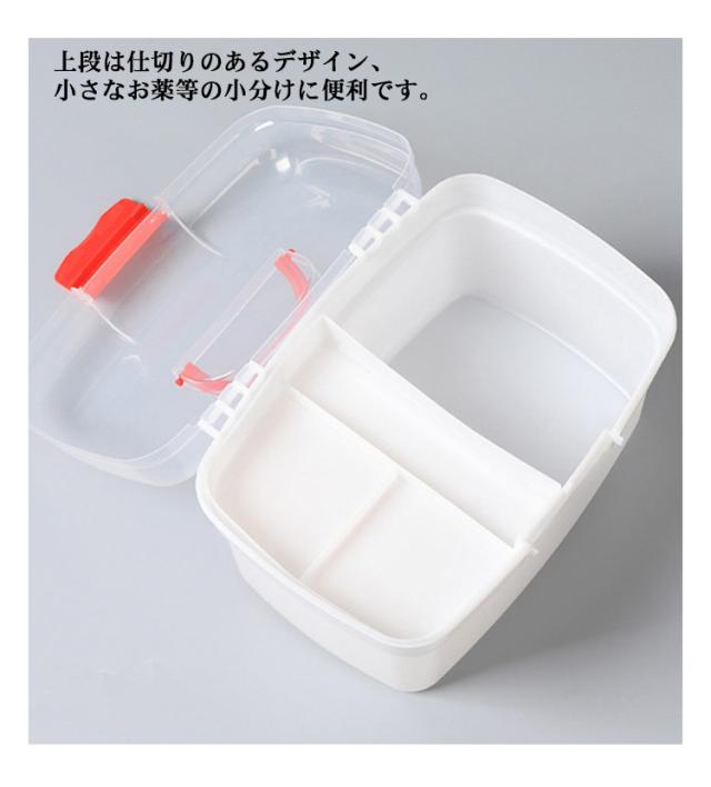 【送料無料】救急箱 おしゃれ 大容量 薬箱 シンプル おしゃれ 薬箱 2段収納 薬ケース 仕切り板 薬入れ くすり整理箱 たっぷり収納 日用品 丈夫 小物入れ 小物収納 持ち手付き 家庭用 救急BOX 便利グッズ クリア 緊急応急 応急処置 防災グッズ 道具箱